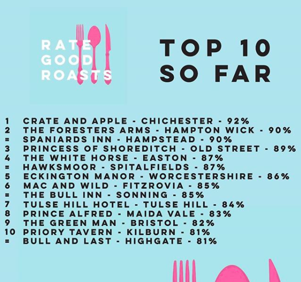 It is great excitement that i announce that we are currently top of the leaderboard for the best roast in the UK. reviewed by the online independent review critic #rategoodroasts. Please see the full list below